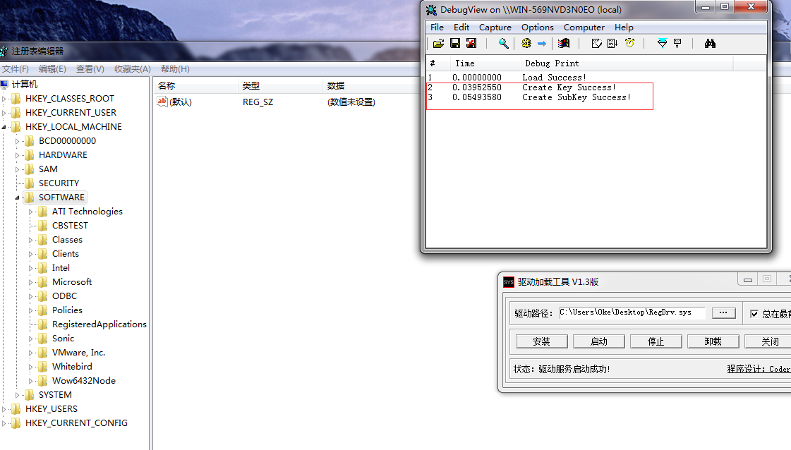 DbgPrint("Create Key Success!");