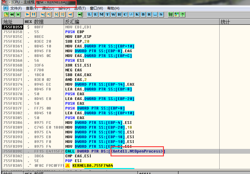 3.进入Kernel32Base.dll中的OpenProcess