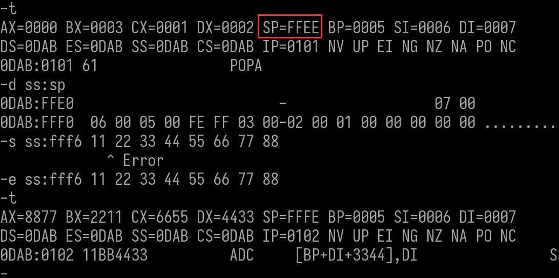 AX-000 BX-00000 CX-0000 DX-0000 SP-FFFFE BP-0000 SI-0000 DI-0000