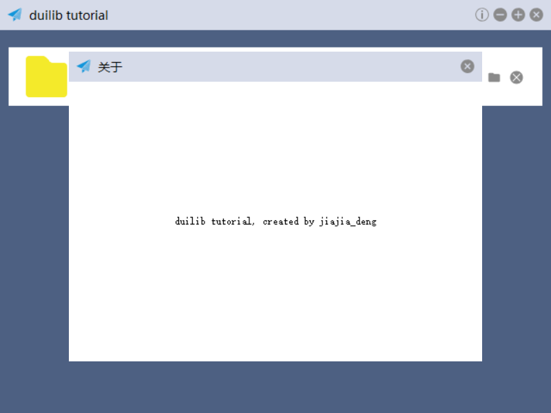 <Label align="center" text="duilib tutorial, created by jiajia_deng)