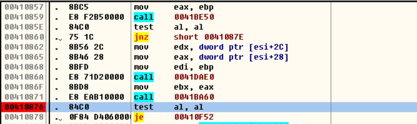 可以看到 基址位 ESI 14BCDCEB 偏移为 0x40